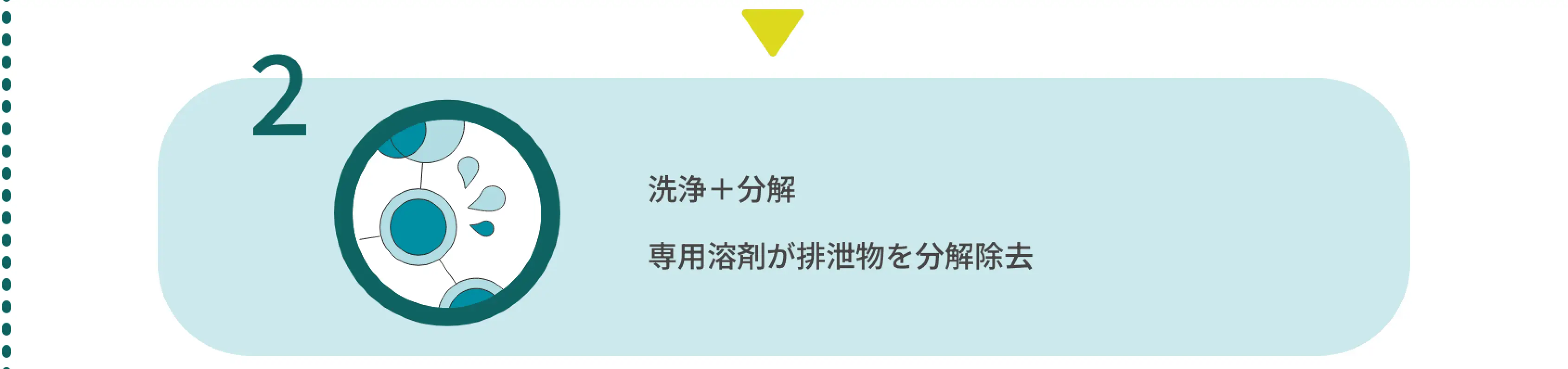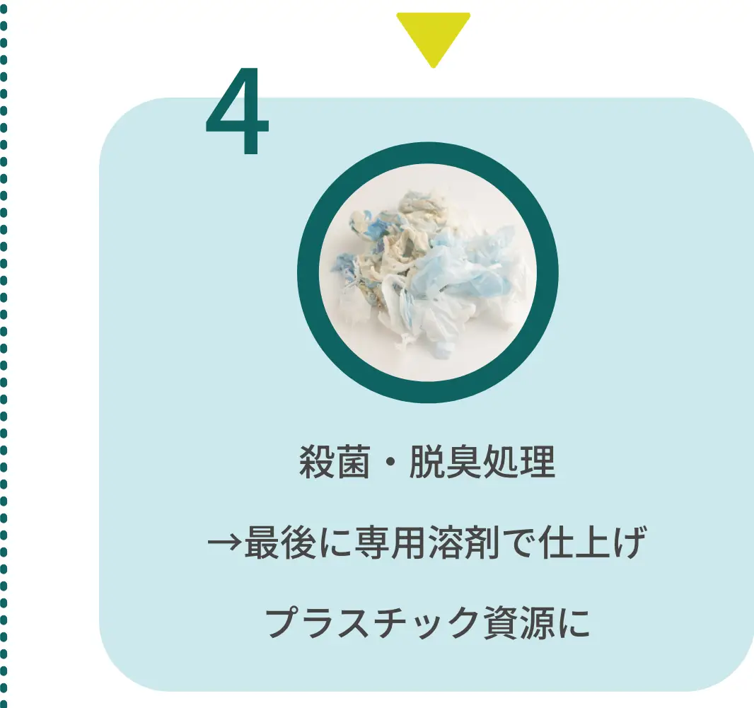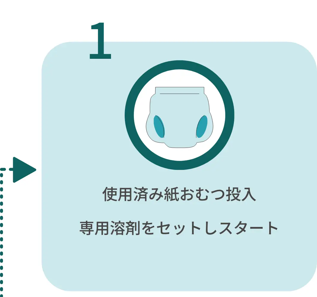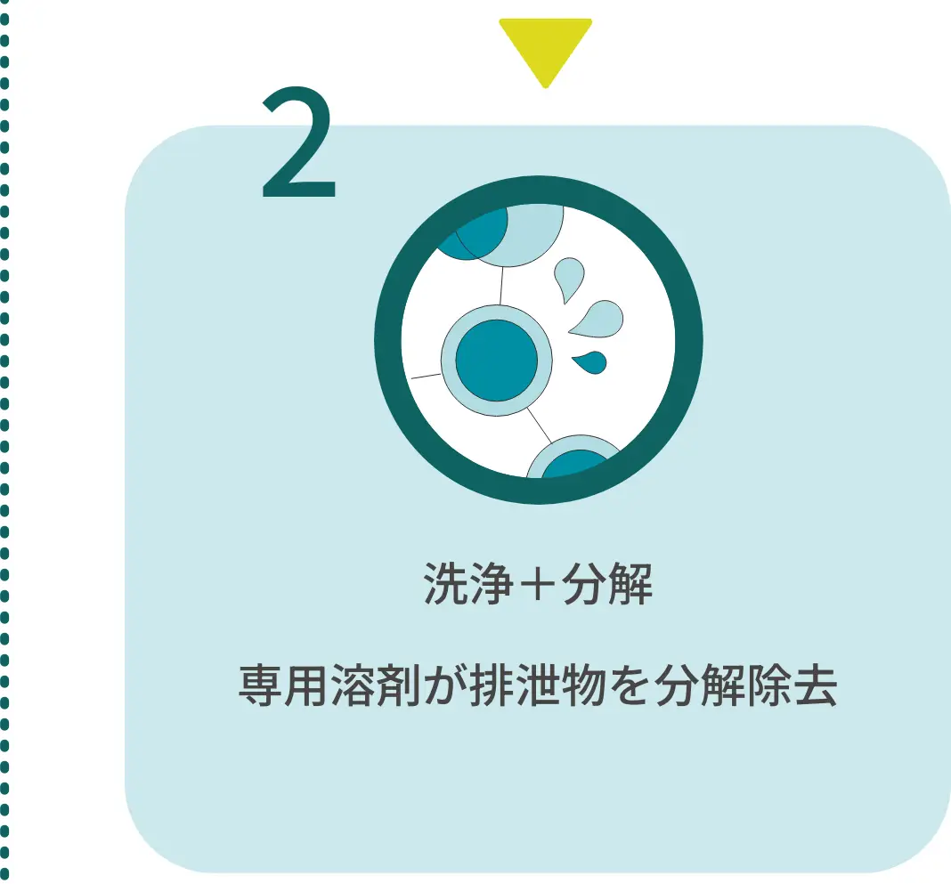 →排泄物を吸収した高分子ポリマーを専用溶剤が素早く分解