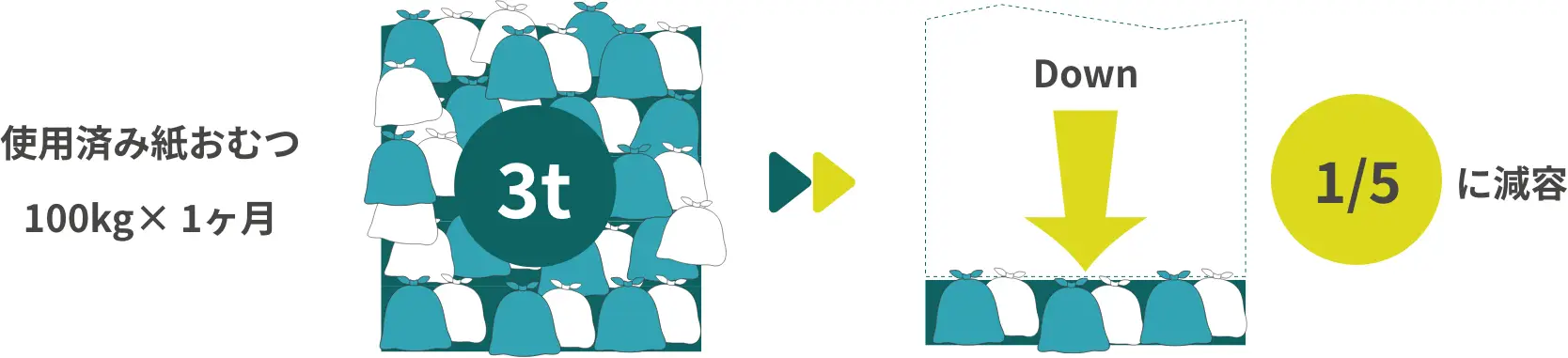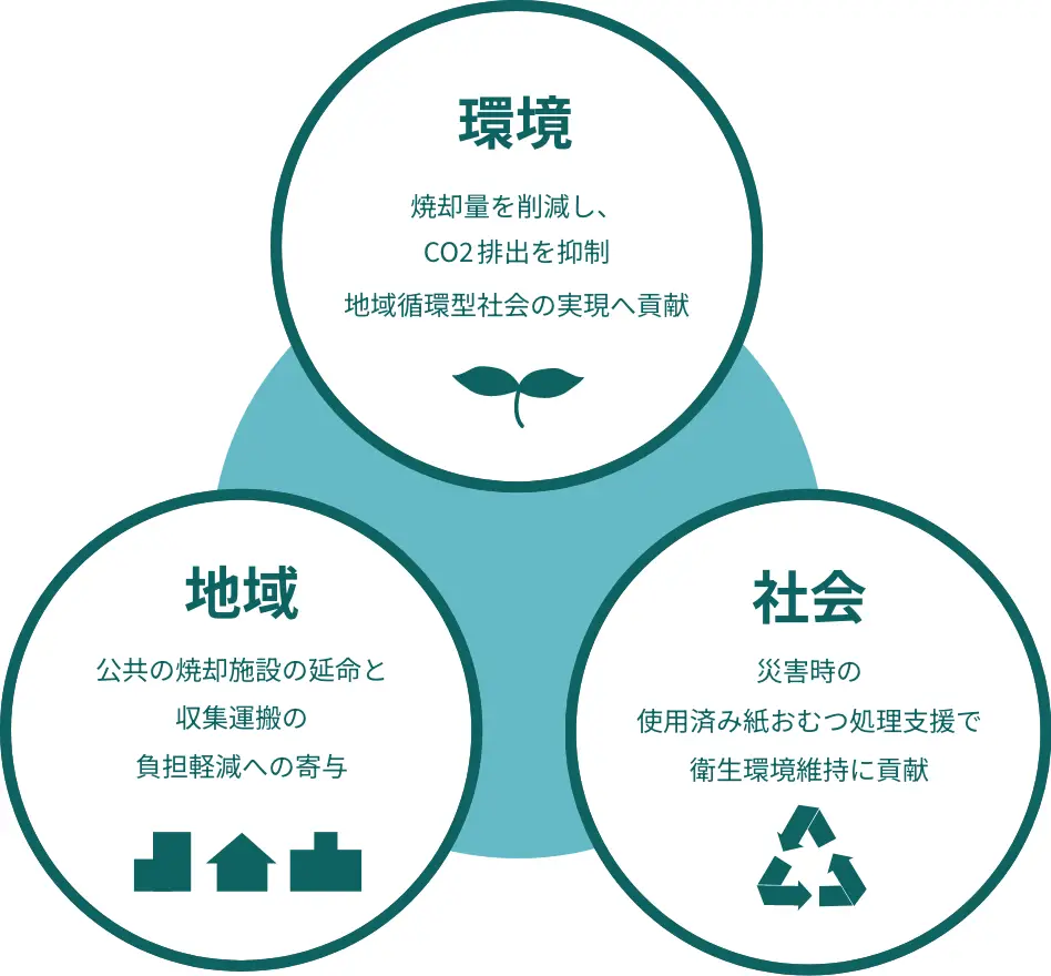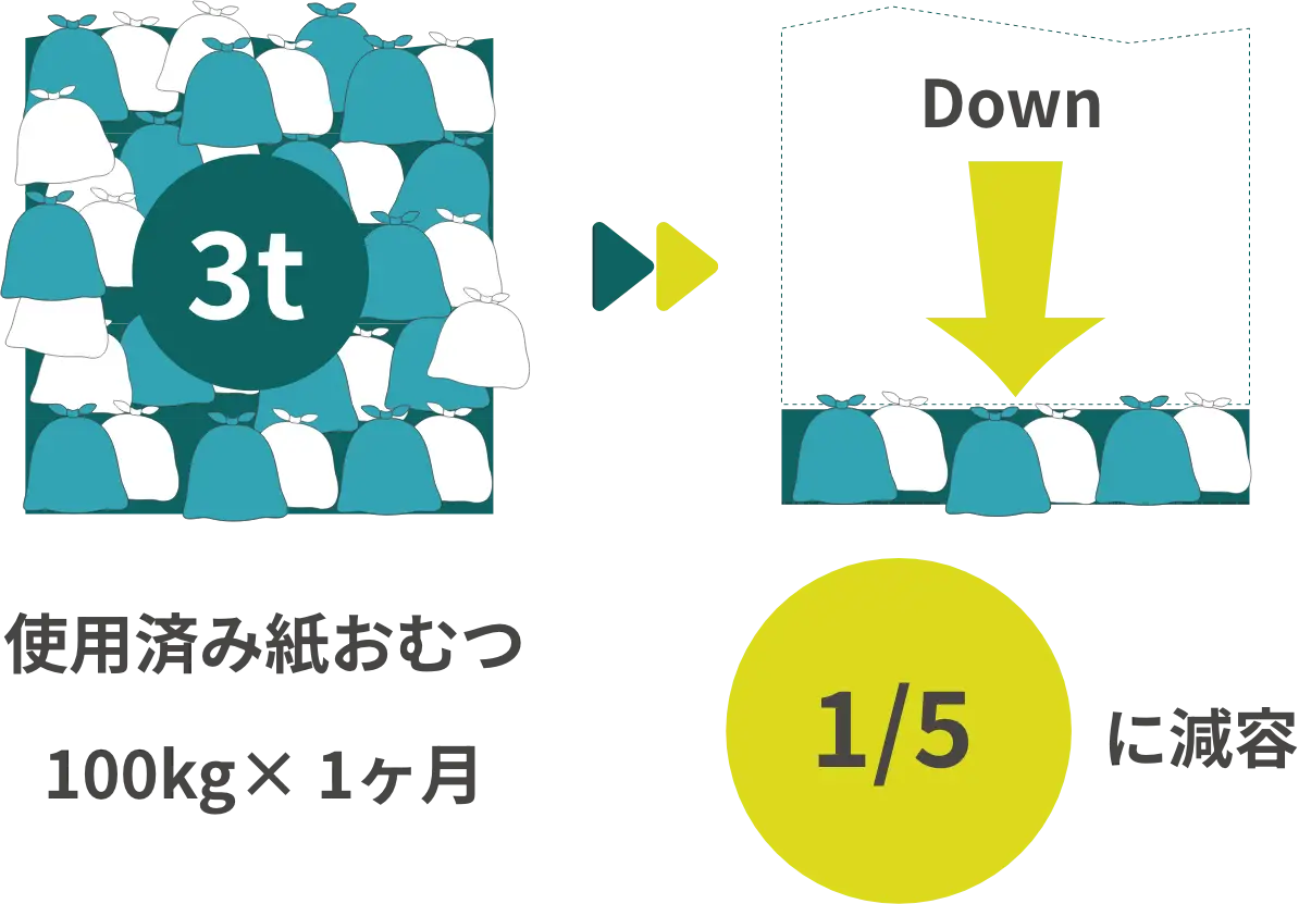 使用済み紙おむつの「臭気・かさばる・重い」といった衛生面・課題を解消。